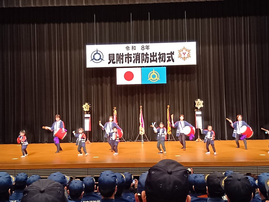 杉沢保育園幼年消防クラブの園児たちの可愛くも見事なバチさばきをみせせてもらいました。