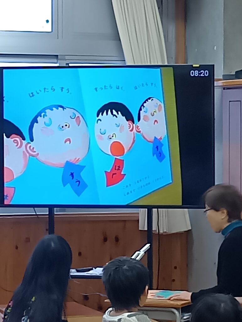 今日はメンバーとともに今町小学校の朝の読み聞かせ。