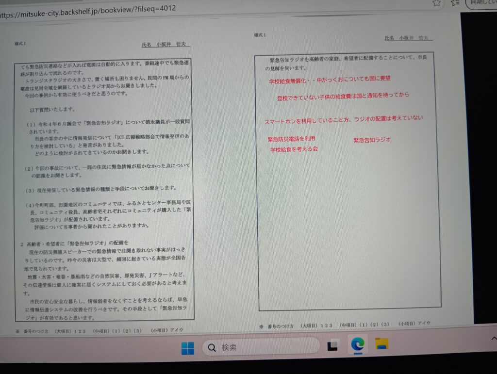 執行部のこれからの作業もあるけれど、今後の方向性などについて丁寧な答弁です。