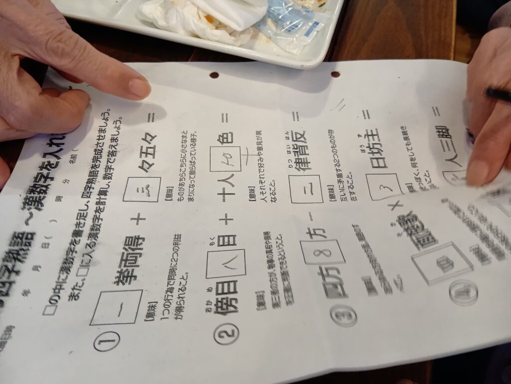 今町のKUSANOさんにお仲間が集って、プリントの答え合わせや教え合ったりとにぎやかに会話をされていました。