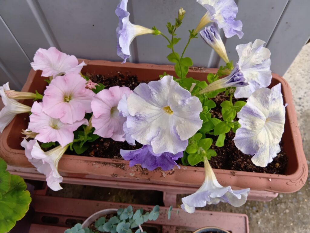 かすかすのプランターに花苗を移植( ´艸`)